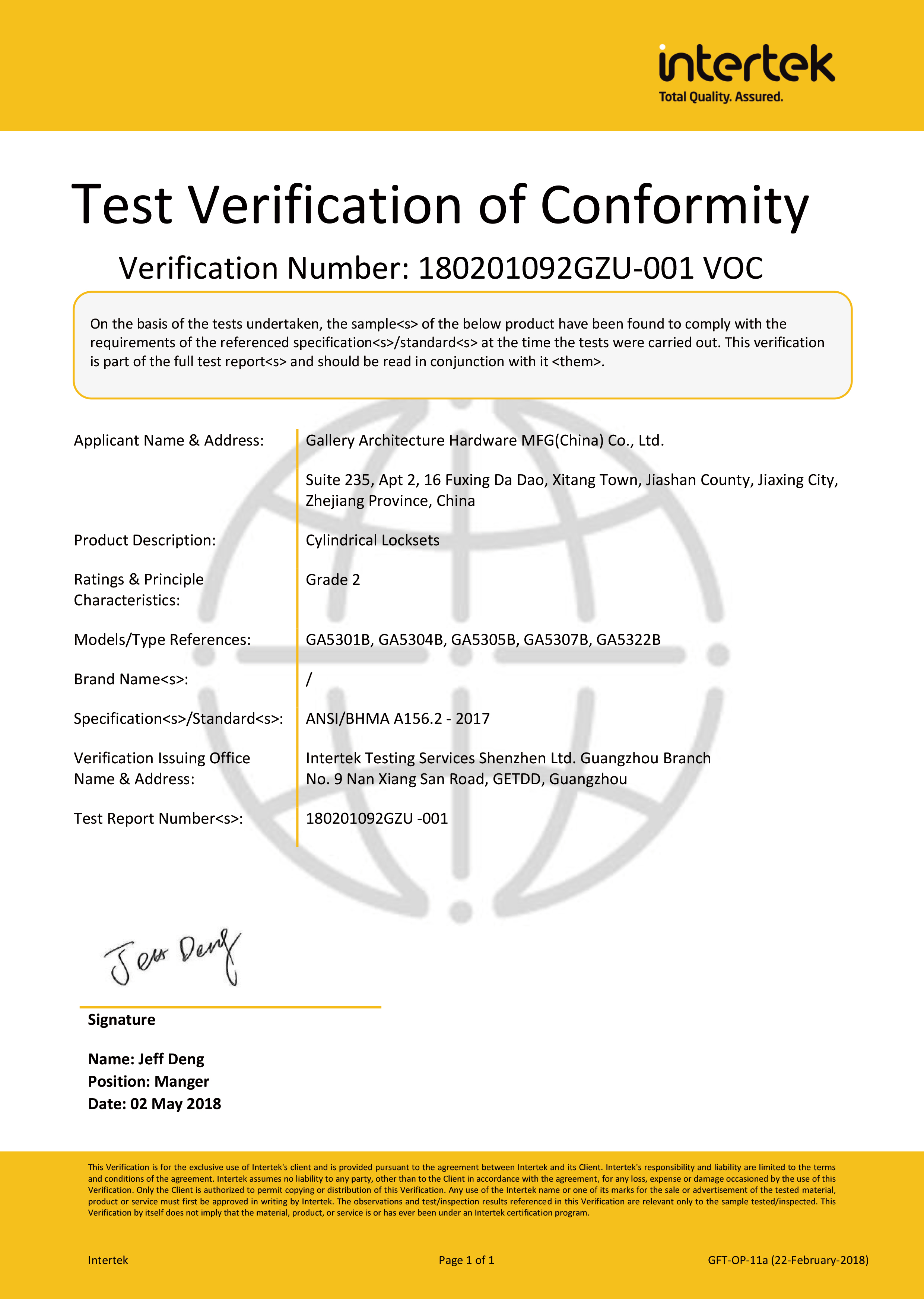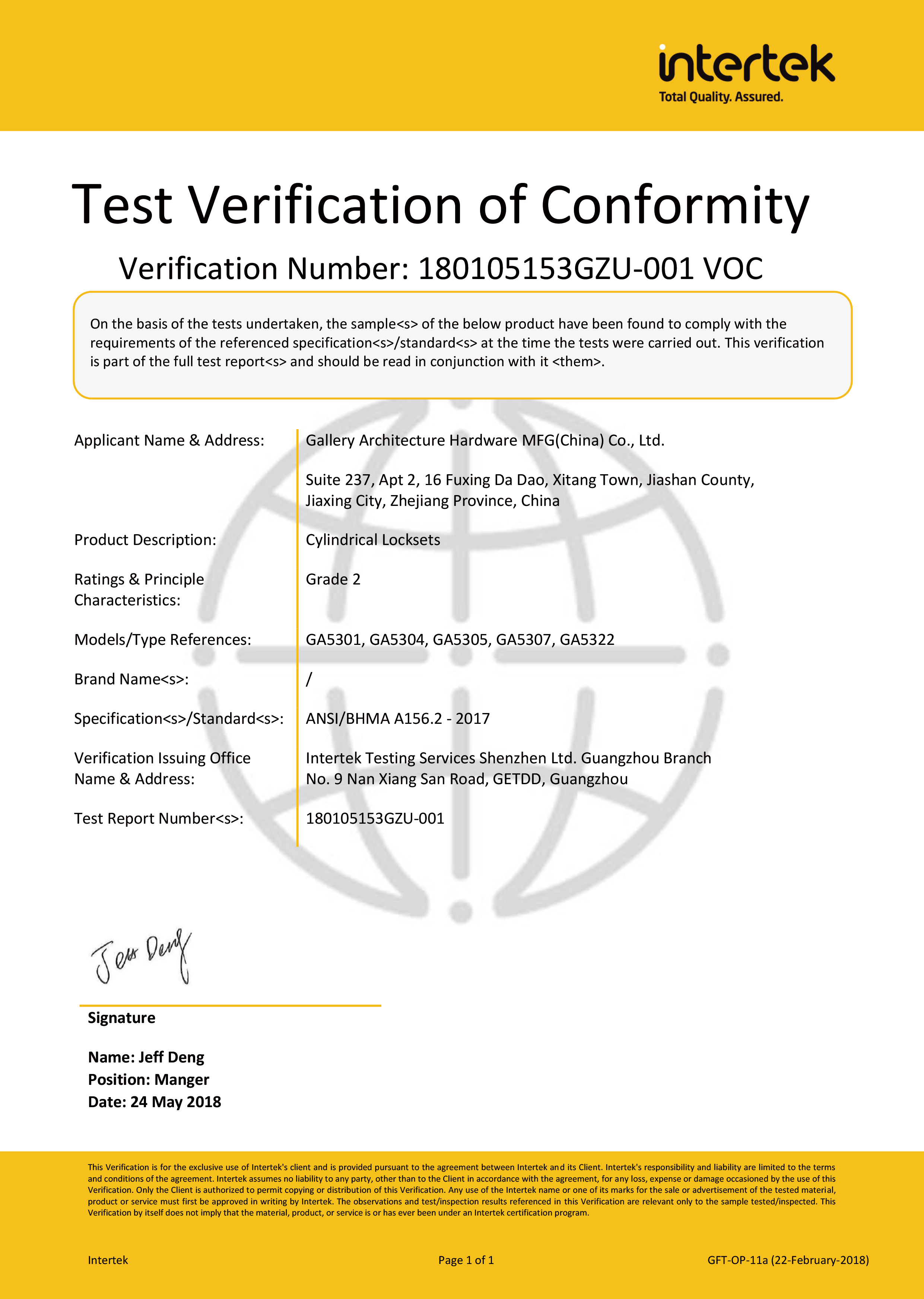 浙江堅(jiān)迪五金制造有限公司始建于 1995 年。自 2003 開始,公司致力于高標(biāo)準(zhǔn)商業(yè)鎖的研發(fā)工作,并于 2006 及 2007 年,8700 插芯鎖系列獲得美國國家標(biāo)準(zhǔn) ANSI A 156.13-2005 一級(jí)、ANSI A 156.2-2003 二級(jí)和美國 UL 10C3 小時(shí)防火測試認(rèn)證。自 1998 年以來,公司不斷提升產(chǎn)品和客戶服務(wù)品質(zhì),并獲得了 ISO 9001 的認(rèn)證。